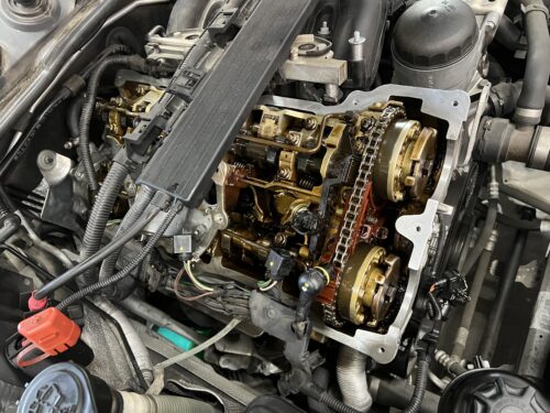 まずはダブルVANOS にアクセスするためにタペットカバーや色々外していきます。